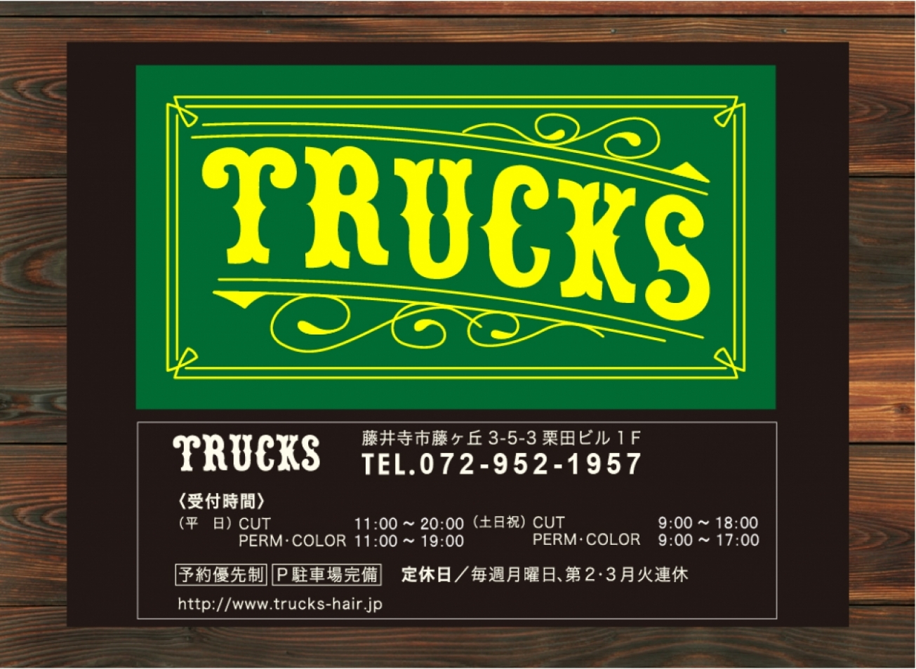 TRUCKS 藤井寺市にある美容室のトラックス のホームページです。トラックスは藤井寺駅より徒歩でご来店いただける美容室です。